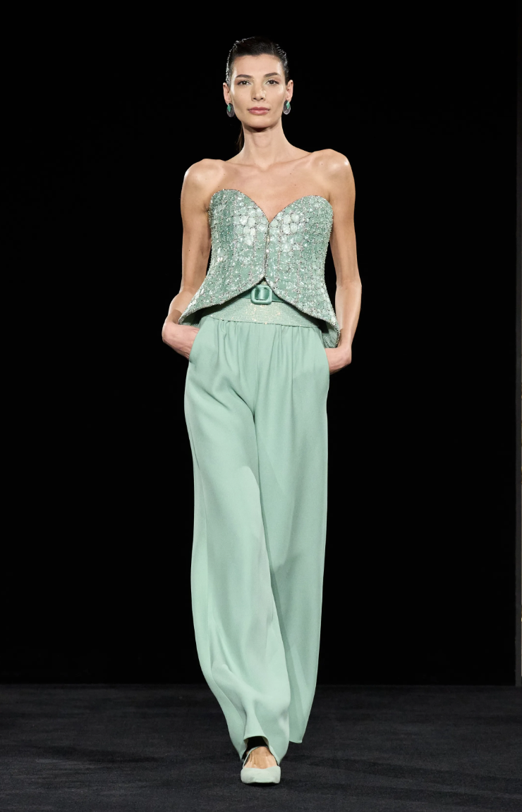 Esta colección también marcó una redefinición del propósito de la alta costura. Para Silvana Armani, no se trata de espectáculo ni de fantasía inalcanzable, sino de ropa pensada desde una mujer para mujeres. Hubo menos vestidos de noche y más propuestas de día, más prendas que dialogan con la vida real, con una elegancia que acompaña en lugar de imponer.