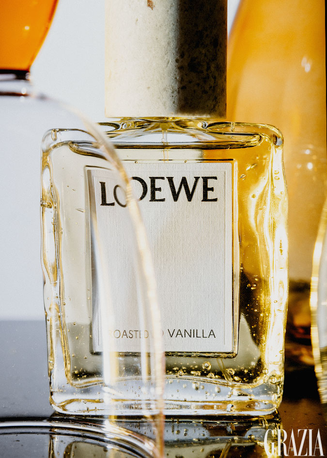 De la familia especiada gourmand y de la rosa, nace LOEWE Roasted Vanilla. El primer golpe es uno de pimienta rosa, aceite de elemí y rosas. Las notas