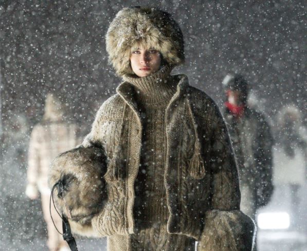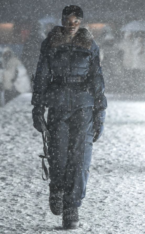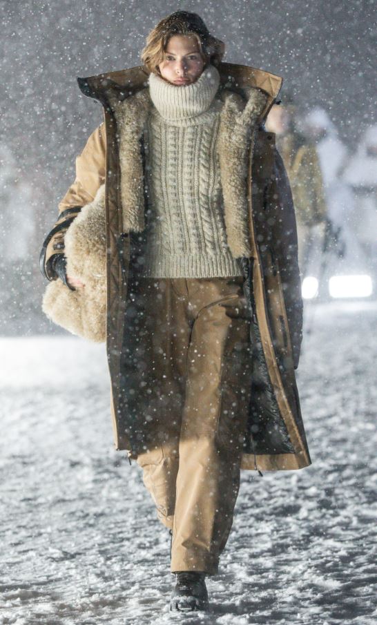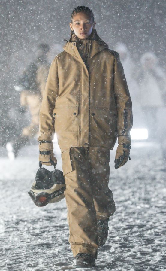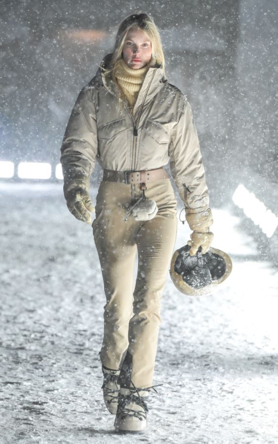 La pasarela se llenó de estilo con trajes de esquí de alto rendimiento, abrigos de punto grueso y una colaboración exclusiva con Moon Boots. La colección reflejó la elegancia que puede existir en los deportes extremos, capturando la esencia del espíritu alpino.