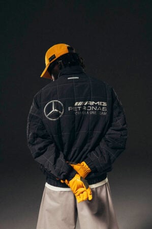 La línea de indumentaria reinterpreta los códigos de las carreras desde la óptica cultural de Bad Bunny, con tipografías audaces, insignias y bloques de color, rematados con el motivo “94”, una referencia tanto a los números de carrera como a su año de nacimiento. Inspirada en las pistas de carreras —oscuras, desgastadas y con detalles técnicos—, la colección destaca por sus materiales premium y su branding sofisticado. Incluye gorra, camisetas con cierre, chamarra de piloto, guantes y pantalones de carrera.