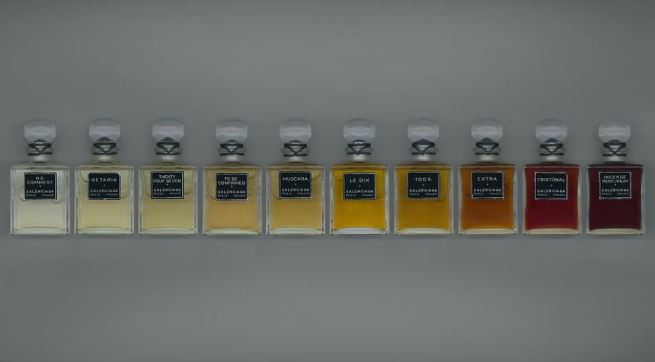 Entre sus nombres encontramos referencias a la historia de la casa y a su fundador: “Getaria”, inspirada en la costa española y en la localidad natal de Cristóbal Balenciaga; “Cristóbal”, con aroma enigmático, discreto pero que irradia gravedad; y “No Comment”, homenaje al silencio misterioso que rodea al diseñador.