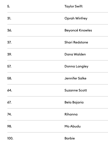 Como Forbes explicó en las razones por las cuáles Barbie tiene la posición número 100 de esta lista de 100 mujeres, la cinta de Barbie visibilizó “la necesidad de luchar para recuperar el poder femenino que le ha sido arrebatado”.