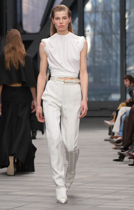 Antes de Leoni, la marca estuvo dirigida por Raf Simons, bajo cuya dirección Leoni trabajó en Jil Sander. La experiencia adicional de la diseñadora en The Row y Celine (con Phoebe Philo) enriquece aún más su interpretación de Calvin Klein Collection, que históricamente se ha mantenido a caballo entre la expresividad urbana y la sastrería moderna.