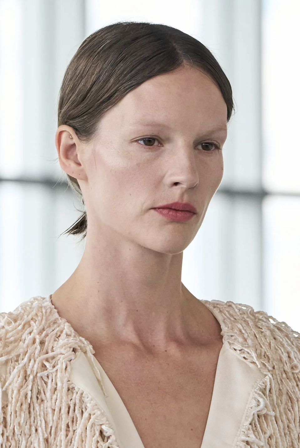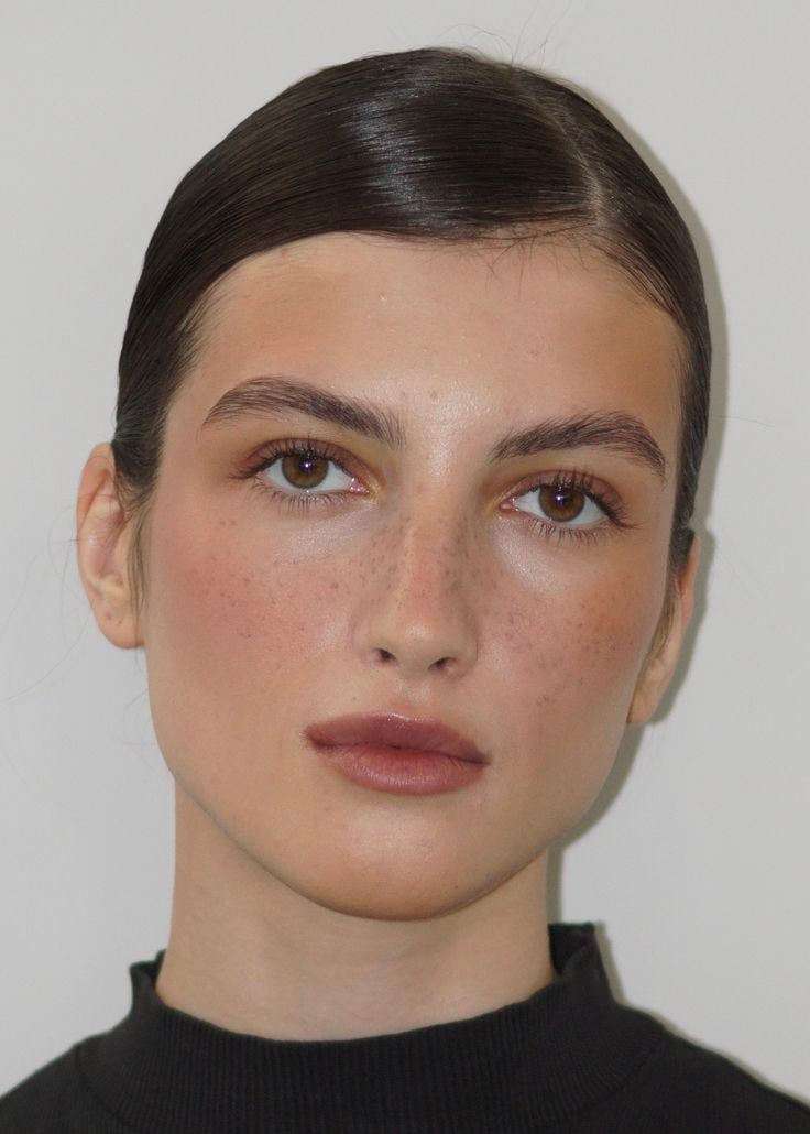 Firmas como Off-White y N°21 proponen llevar las cejas en su forma y color original. Tras años de delineados intensos, esta temporada sugiere saltarse el paso del maquillaje en esta zona. El resultado es un look que suaviza los rasgos y cede todo el protagonismo al resto del beauty look, facilitando una rutina de belleza mucho más versátil y orgánica.
