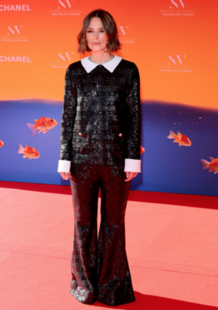 Actriz que ha trabajado en películas como Diamant Brut, Les filles désir y Enzo. Llevó un conjunto elegante con toques punk delicados, jugando con los códigos clásicos de CHANEL.