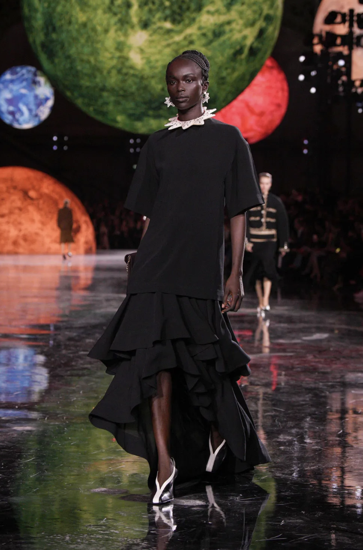 El concepto detrás de la colección es claramente universal: todos observamos el mismo cielo, y, según Blazy, esa vista provoca una emoción común en cada uno de nosotros. Esta propuesta transciende lo físico y se convierte en una experiencia emocional y visual, donde la conexión con lo etéreo y lo sublime es palpable.