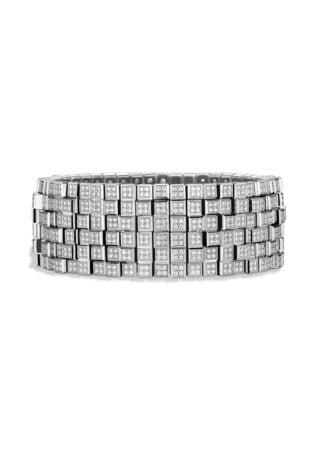 Una serie de pulseras, así como un alfiler de usos múltiples, recuperan los códigos arquitectónicos de la colección a través de unos cubos de diferentes alturas que evocan un skyline urbano en el que los rascacielos de cristal y acero relucen al ritmo de la luz cambiante. Estas creaciones capturan la energía de una ciudad al amanecer.