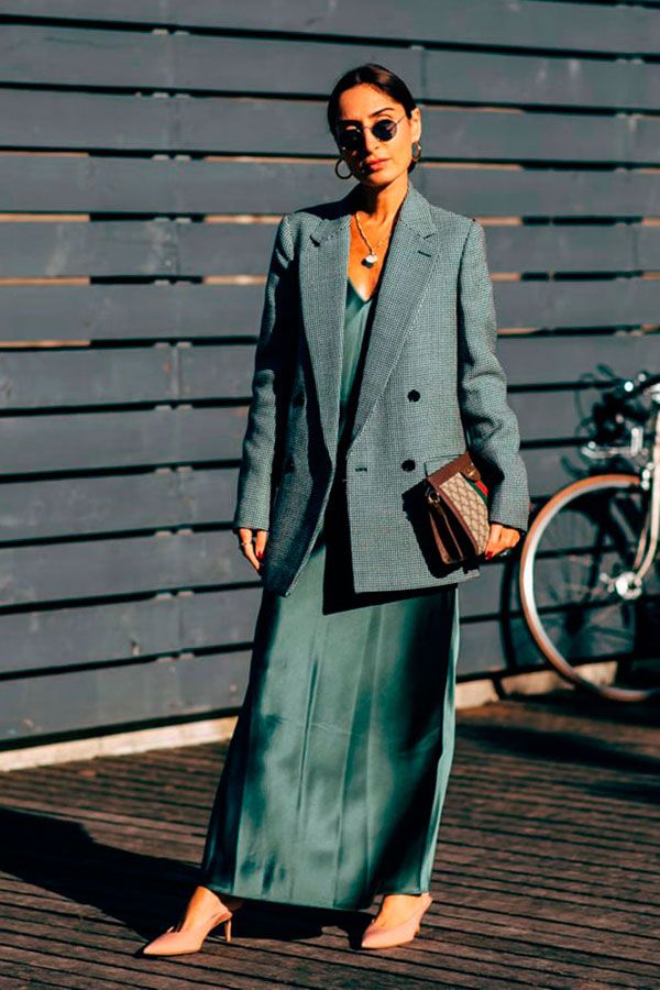 El blazer clásico también se posiciona como el complemento ideal para vestidos sencillos. Al superponerse, aporta definición a la silueta y transforma una prenda ligera en un look más estructurado.