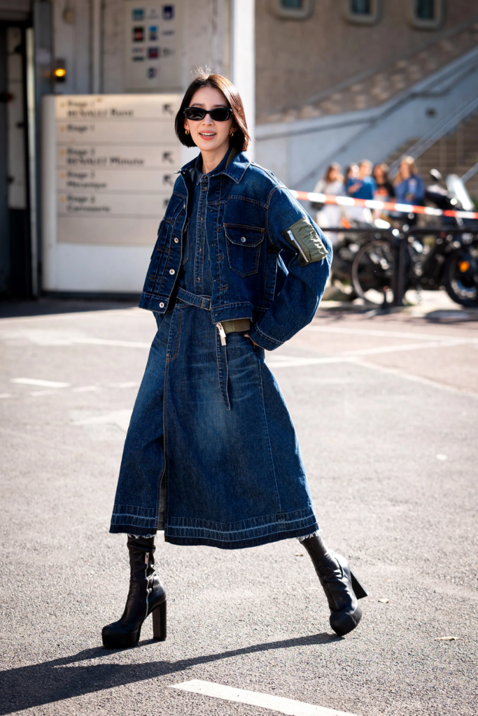 Los materiales juegan un papel fundamental en esta evolución. El denim aporta una dimensión más casual y contemporánea, mientras que el algodón y la seda introducen ligereza y sofisticación. Esta variedad permite que la prenda se adapte a diferentes estilos personales, manteniendo siempre una coherencia estética basada en la simplicidad de su forma.