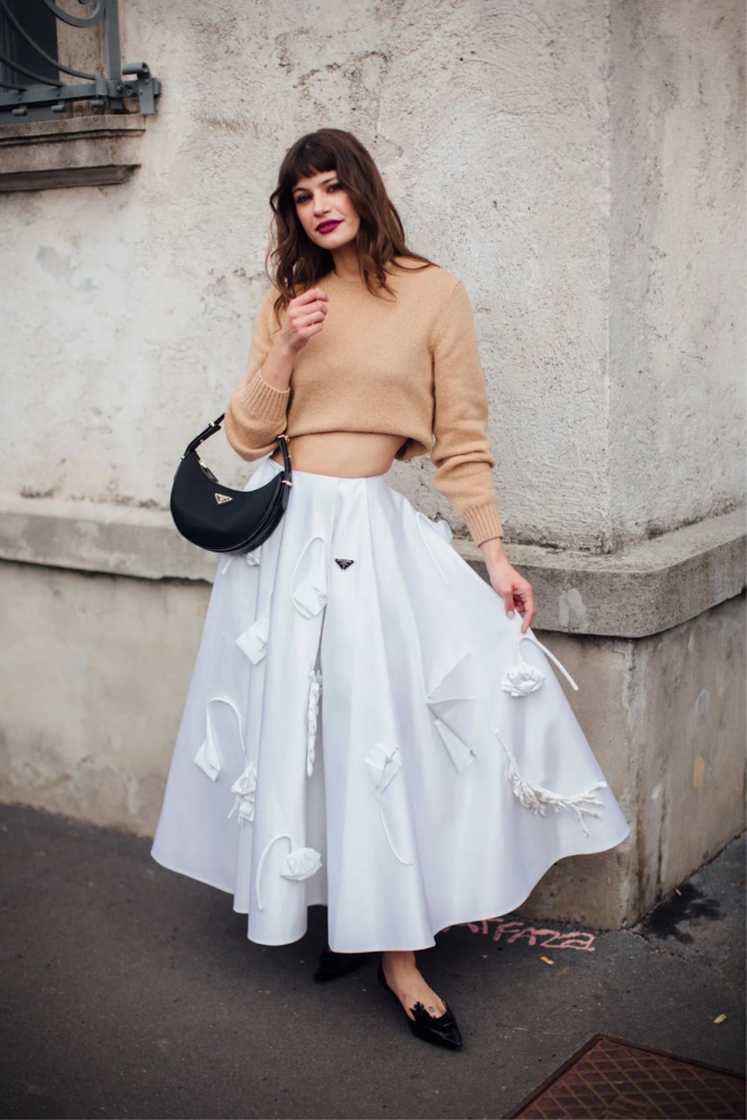 Durante la primavera verano 2026, las versiones maxi cobran especial protagonismo. Amplias y fluidas, estas faldas aportan un sentido de movimiento que resulta particularmente atractivo en climas cálidos. El volumen se convierte en un elemento expresivo, capaz de transformar un look sencillo en una propuesta visualmente impactante sin necesidad de recurrir a excesos.