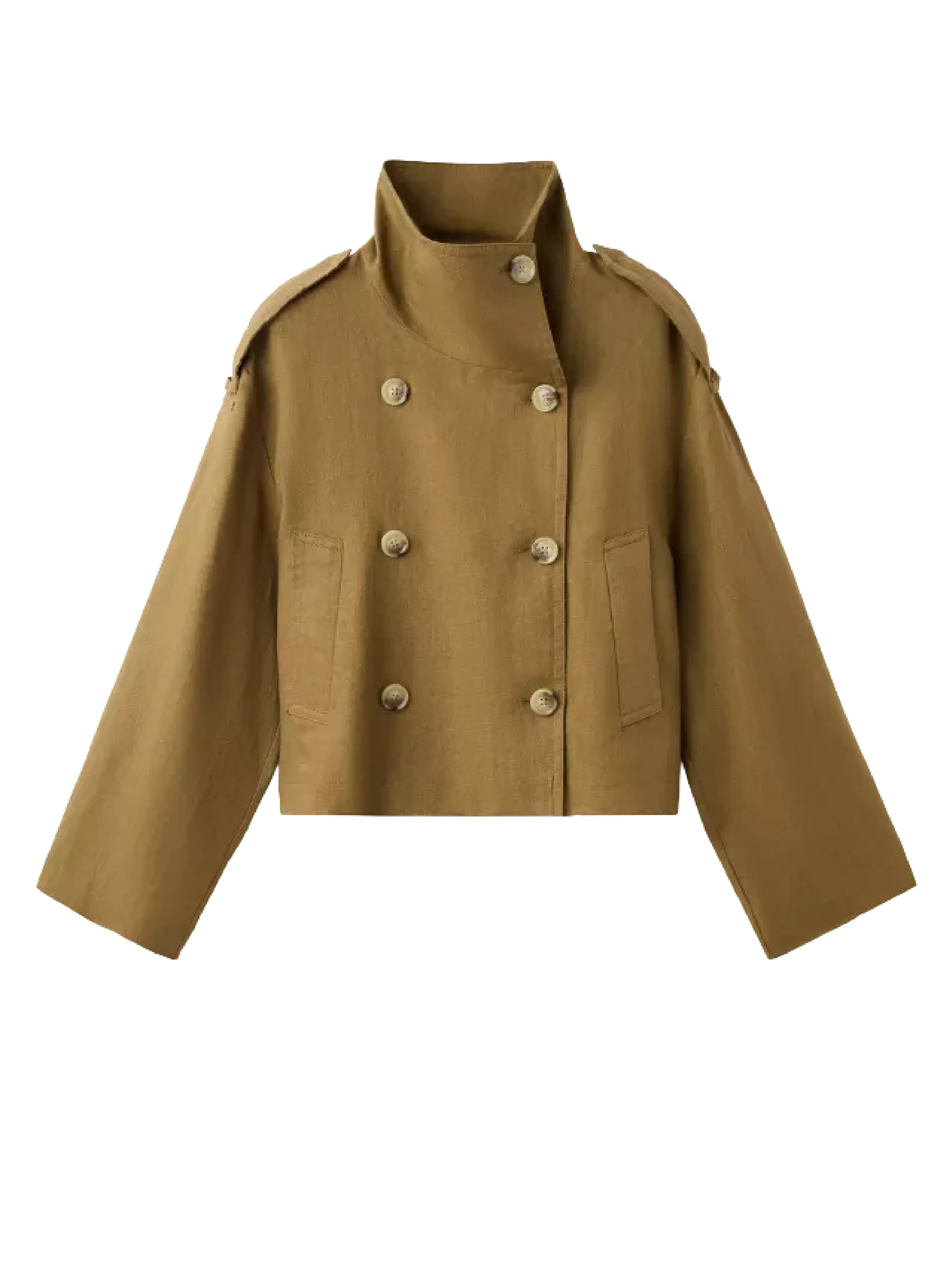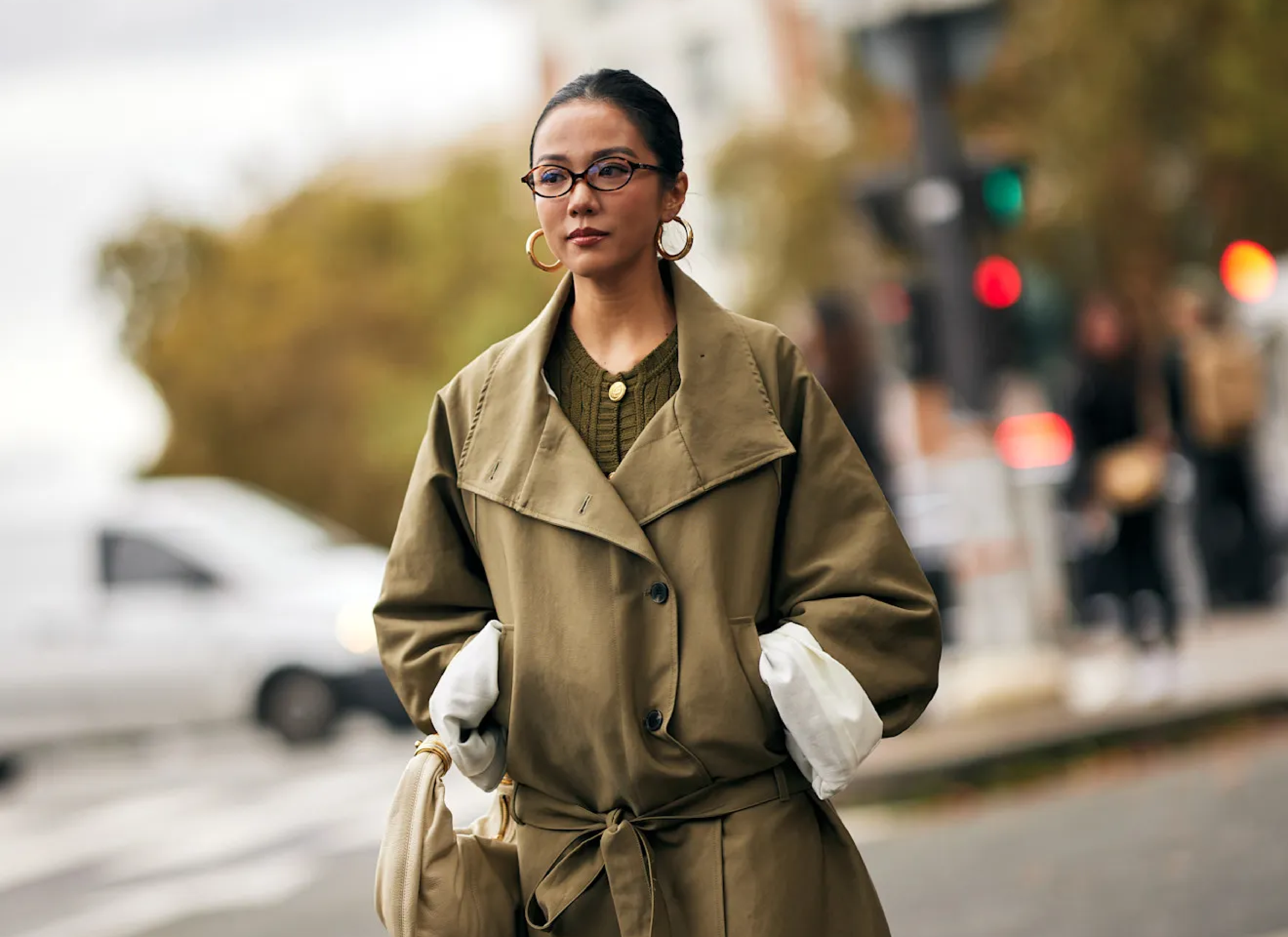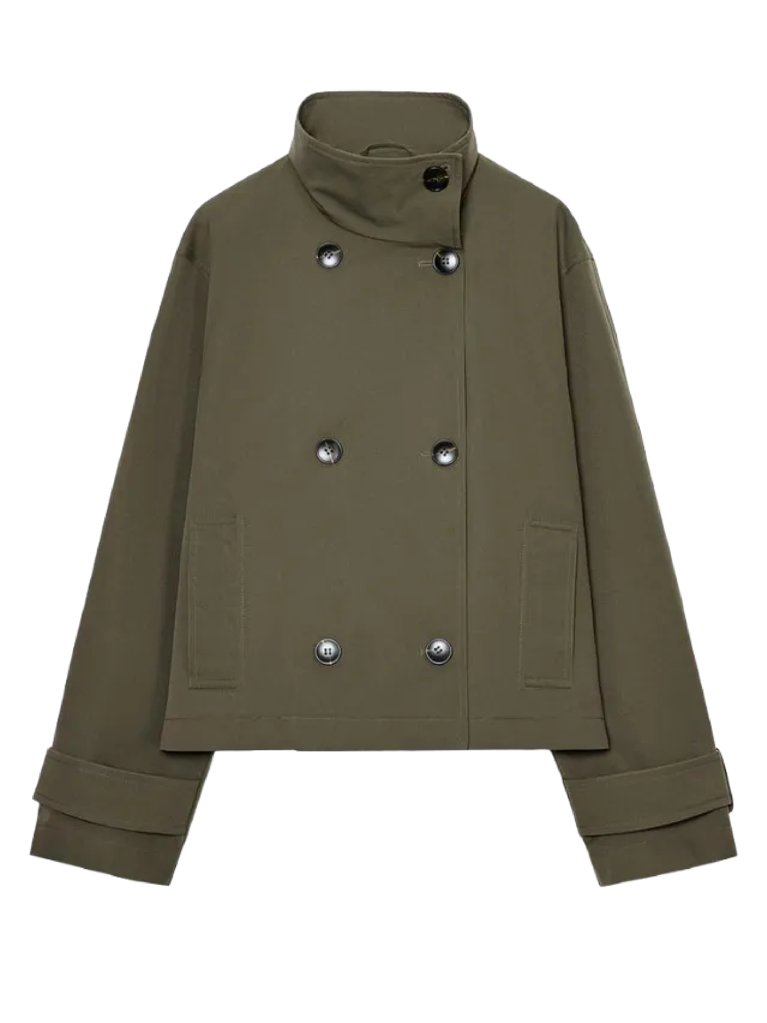 Gabardina corta verde: el neutro con carácter
