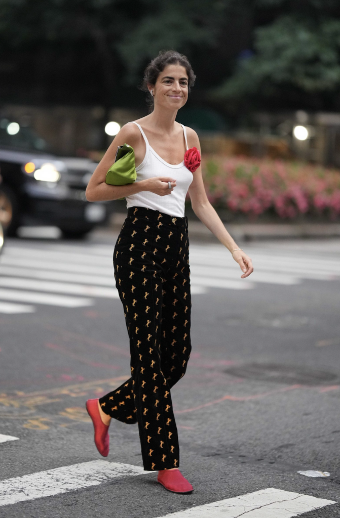 La versatilidad del rojo permite que funcione con diferentes tipos de prendas. Las blusas boho dan un aspecto relajado cuando se combinan con sandalias o mocasines. En el caso de los trajes de sastrería, este calzado introduce un contraste moderno que rompe con la formalidad tradicional.