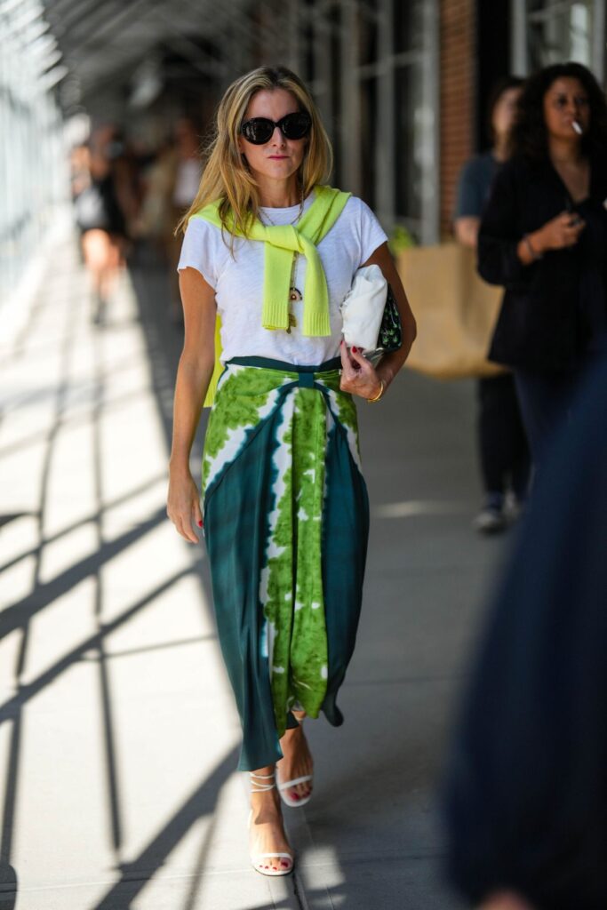 Los pareos en tonos vibrantes condensan la energía de la temporada en una sola pieza. Rojos intensos, verdes limón, naranjas luminosos, azules eléctricos y verdes tropicales construyen looks que evocan sol, movimiento y libertad. En la playa, se convierten en protagonistas inmediatos; en la ciudad, encuentran equilibrio al combinarse con básicos neutros. Un pareo colorido anudado como falda, junto a una camiseta blanca, crea un conjunto que se siente fresco, actual y espontáneo.