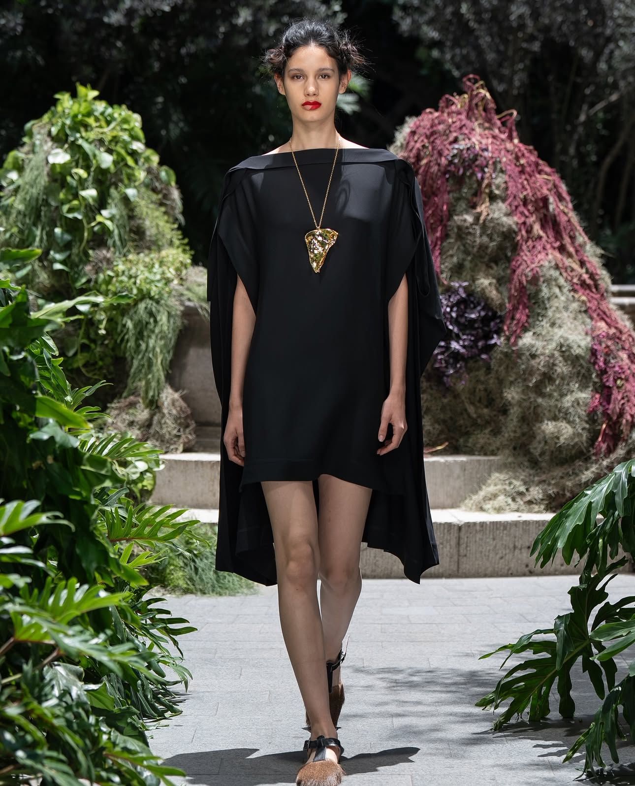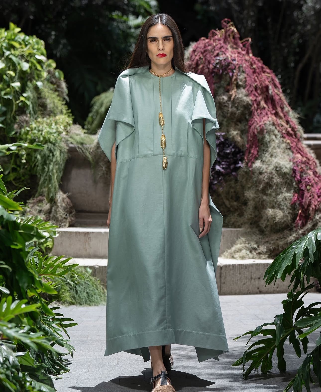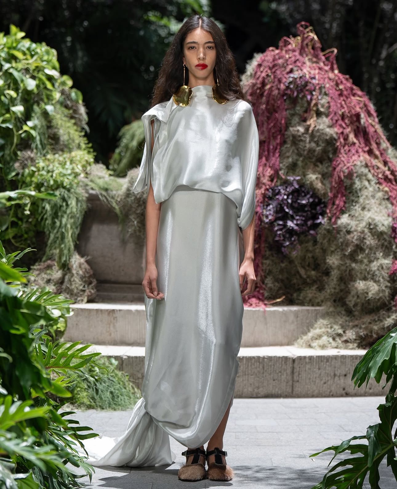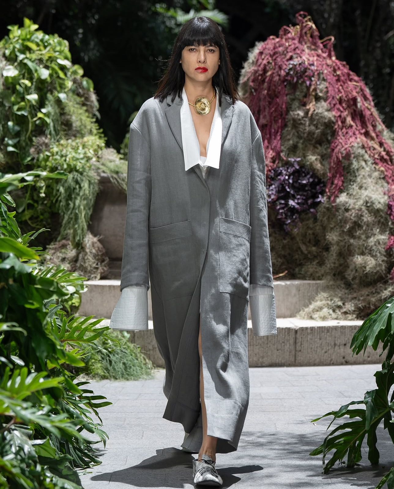 Rodeadas de las plantas y árboles que adornan el patio central del hotel, las hermanas dieron a luz la colección que forma parte de la temporada otoño-invierno 2025.