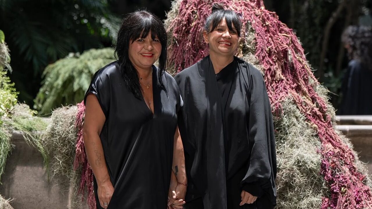 Rodeadas de las plantas y árboles que adornan el patio central del hotel, las hermanas dieron a luz la colección que forma parte de la temporada otoño-invierno 2025.