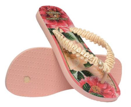 La segunda edición de DGxHavaianas tiene estampados atrevidos y detalles lujosos. Los modelos incluyen las clásicas chanclas Top Flip-Flops adornadas con estampados florales, hojas de plátano, cebra y leopardo. Algunos diseños incorporan correas de macramé hechas a mano y detalles de piel sintética, todos con los logotipos de ambas marcas.