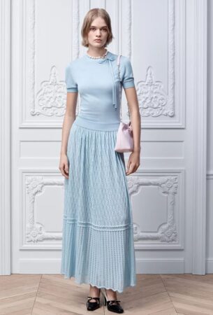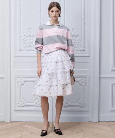Señales extraídas de la historia de la Casa se unen en diseños en los que el pasado conversa con el presente, y lo grandioso con lo común. Todo se expresa a través del filtro de Dior, una sensibilidad cromática, suave y pictórica, así como una forma de hacer las cosas, incluso cuando son aparentemente simples.