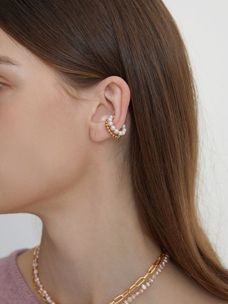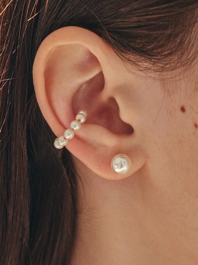 La versatilidad de los earcuffs de perlas es una de sus mayores fortalezas. Pueden convertirse en el punto focal de un look o complementar otros accesorios de manera sutil.