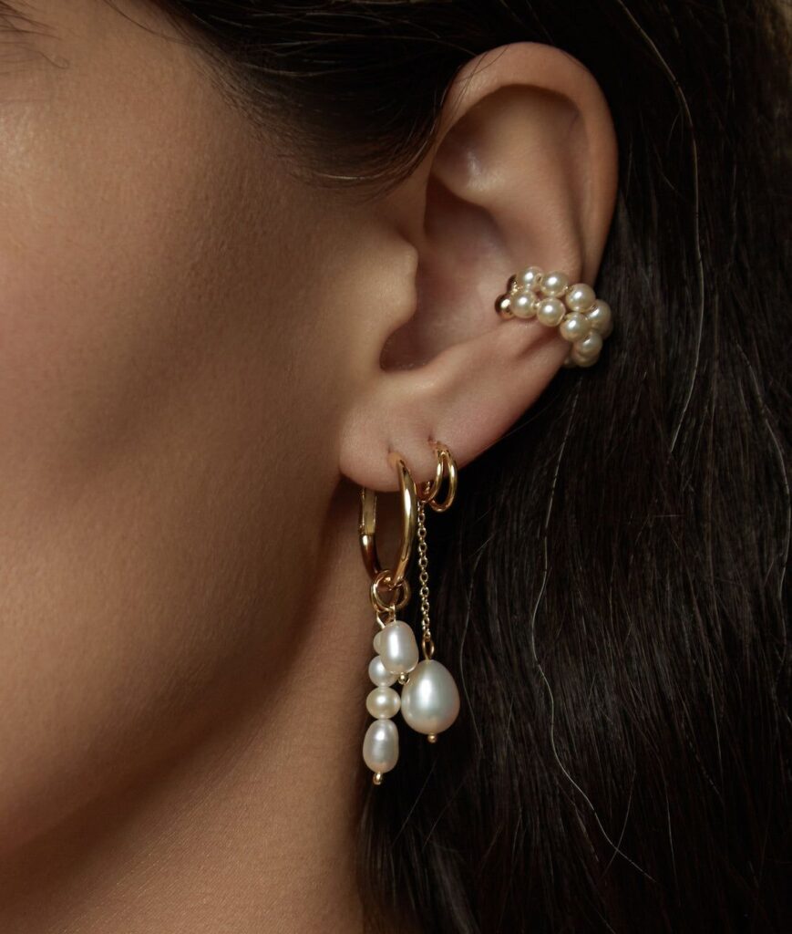 Durante décadas, las perlas han sido sinónimo de elegancia tradicional. Sin embargo, en esta nueva etapa, se liberan de su rigidez para integrarse en propuestas más frescas. Los earcuffs permiten jugar con su disposición, creando composiciones que van desde lo minimalista hasta lo más audaz.