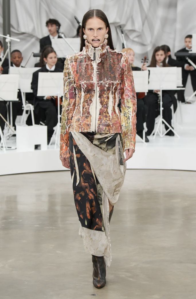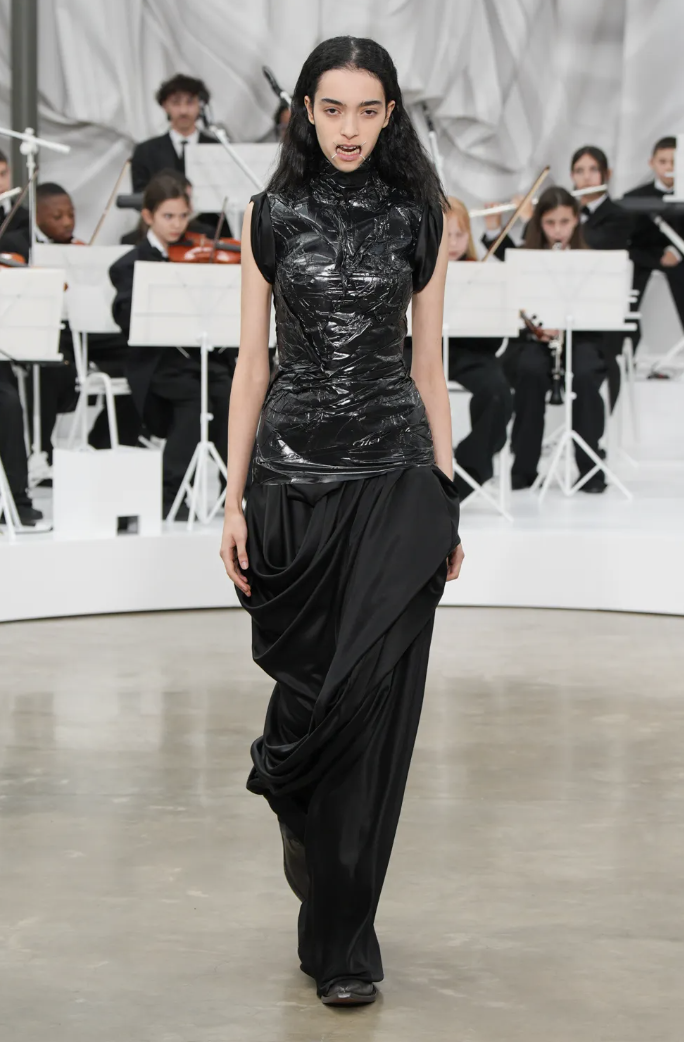 Esta temporada, la maison no propone tendencias, sino conceptos. En lugar de hablar de moda, habla de permanencia; en lugar de adornar, reflexiona. Maison Margiela, bajo la nueva visión de Glenn Martens, reafirma su rol como alquimista del tiempo, convirtiendo lo efímero en eterno y el lujo en una experiencia sensorial.