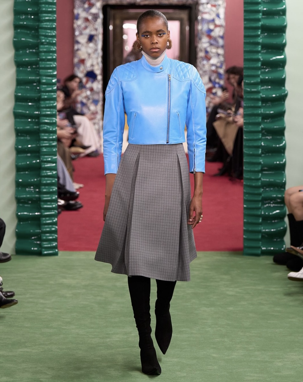 En cuanto a los materiales, este es una colección que muestra un poco de todo ese cuero, pieles, seda, escusas, gasas y detalles de pelo sintético en cuellos y mangas.