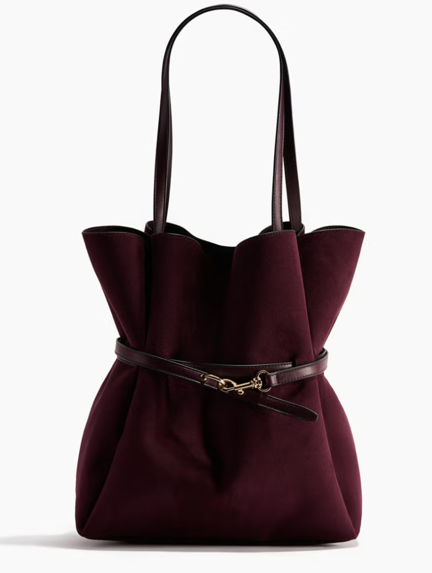 El bolso pouch en formato tote, como la propuesta de H&M, amplía su capacidad y refuerza su presencia. Ideal para jornadas laborales o agendas dinámicas, funciona con vestidos midi fluidos o conjuntos monocromáticos.