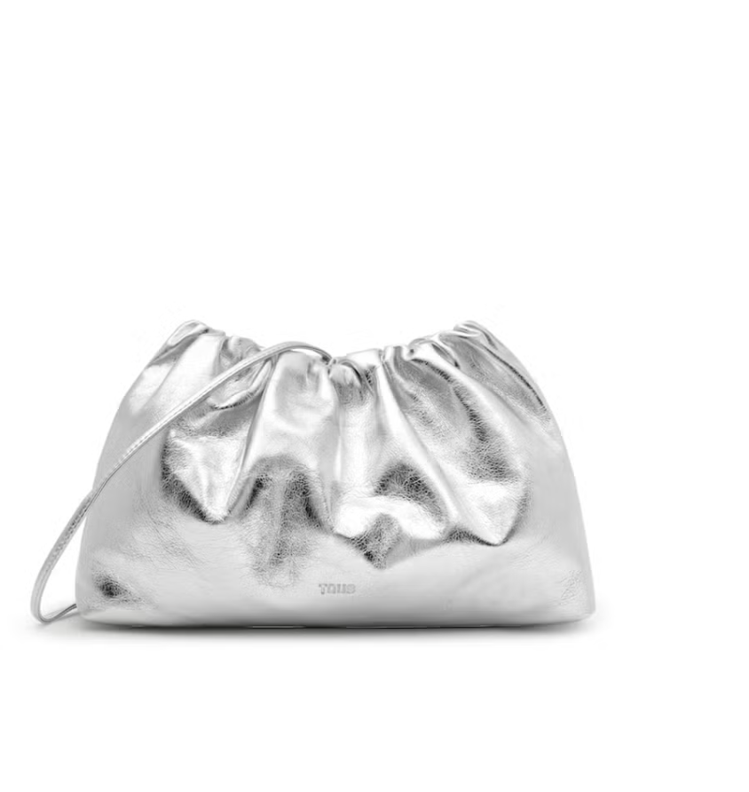 En clave de noche, el bolso pouch evoluciona hacia versiones metálicas o satinadas. El clutch de Tous en piel plata confirma que este diseño puede sustituir al clásico sobre rígido. Llevado en mano, aporta un punto contemporáneo a vestidos negros o trajes sastre femeninos.