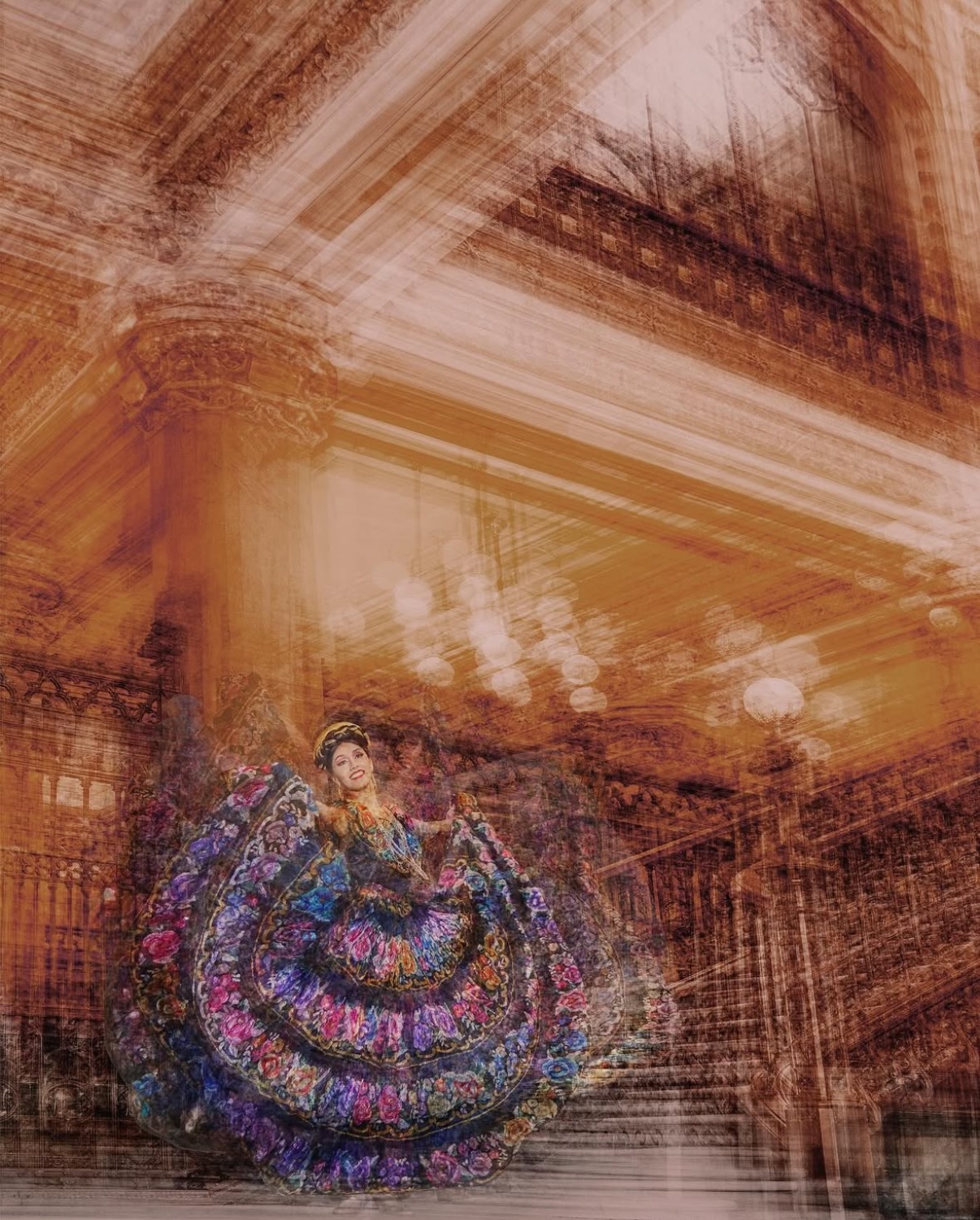 Esta colección, compuesta por 17 piezas fotográficas, celebra el legado cultural de México a través de una fusión entre la destreza del Ballet Folklórico y la visión artística de Gils. Las imágenes presentan a los bailarines en icónicos escenarios nacionales como el Palacio de Bellas Artes y las pirámides de Teotihuacán. Con su técnica distintiva de múltiples exposiciones, el fotógrafo logra retratar el dinamismo y la riqueza emocional de cada movimiento, creando un diálogo visual entre el pasado y el presente.