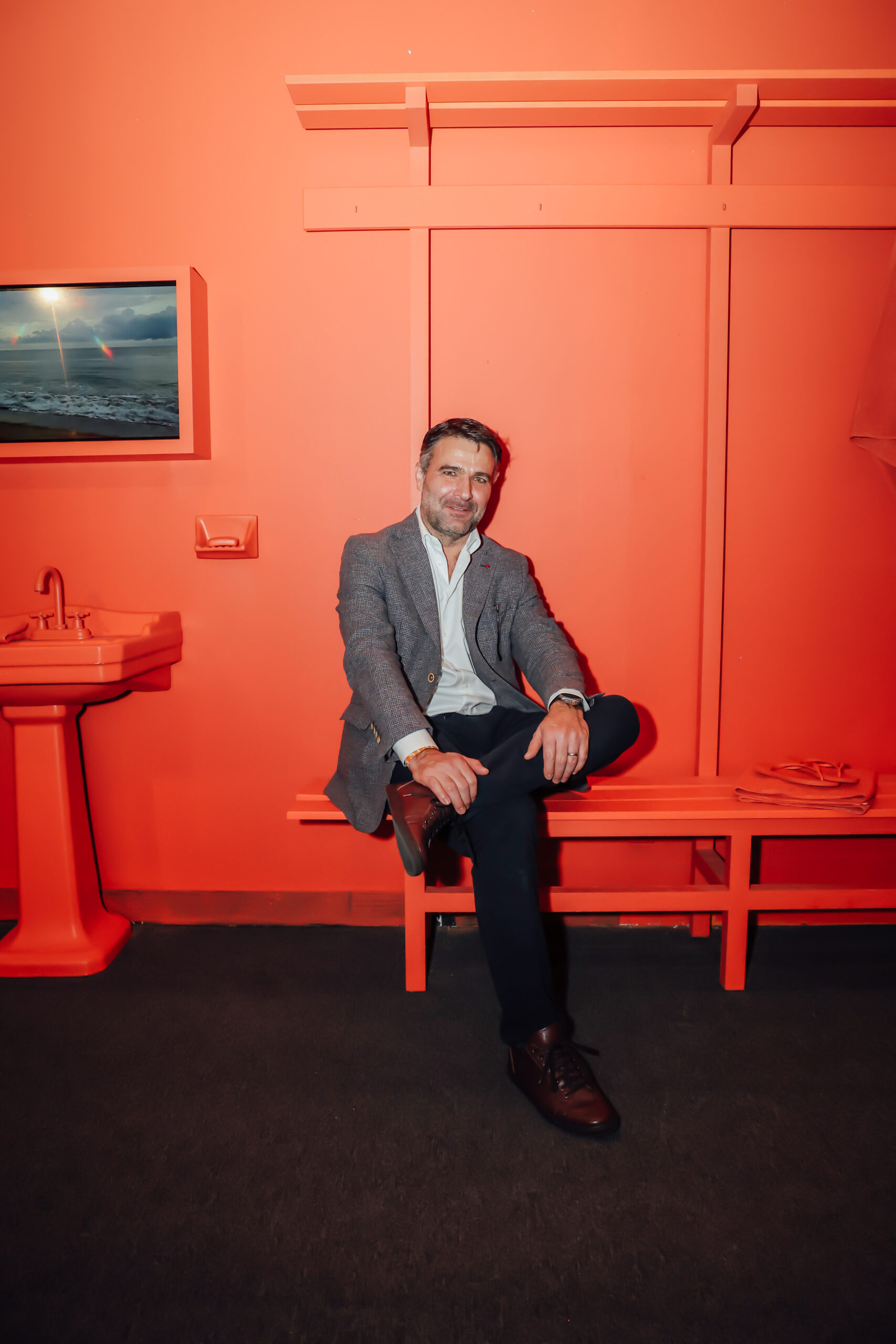 ¿Vamos a nadar o a degustar? El concepto de Gerardo García Studio comienza antes de entrar al restaurante, el acceso simula unos vestidores por los que nos vemos obligados a pasar antes del momento del disfrute, estos preparan al comensal mientras sigue el camino hacia… la alberca.