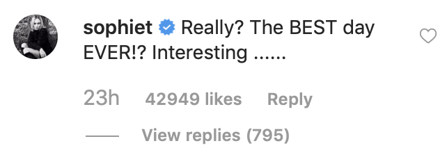 De inmediato la fotografía compartida en Instagram por Joe perdió su objetivo principal, y toda la conversación se centró en el comentario de Sophie. “Pobre pequeño” y caritas de risa, se leen en un comentario. “¡Castígalo! ¿Cómo se atreve”, dice el post de otro usuario. “Ustedes dos son lo más tierno del mundo”, agregó otra persona.