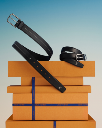 La personalización se intensifica con accesorios diseñados para complementar la moda masculina: un cinturón de cadena plateada adornado con perlas, opciones de serigrafía que imitan el sello de un pasaporte, así como iniciales y detalles atemporales que rinden homenaje a la tradición de viajes de lujo de la Maison.
