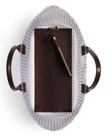 Este bolso se suma a la impresionante cantidad de bolsos y accesorios, que van desde lujosos bolsos de hombro que merecen ser llevados de viaje hasta bolsos de mano que parecen bolsas de librerías, que Bottega Veneta ha presentado bajo la dirección creativa de Mathieu Blazy.