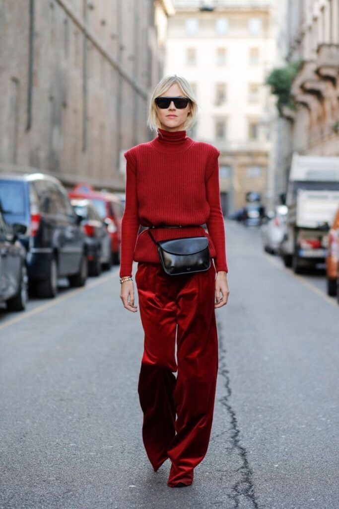 Quienes desean ir más allá pueden apostar por piezas clave como un abrigo largo, una falda midi o un conjunto monocromático. El secreto está en equilibrar las texturas y dejar que el color hable por sí mismo. El rojo tiene una presencia tan contundente que basta con una silueta precisa para crear un look memorable.