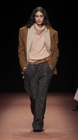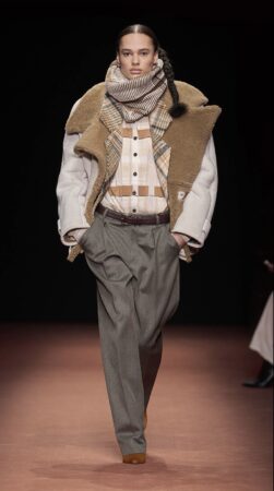 Ocres, tabaco, marrones cálidos y azules profundos dominaron la pasarela. Una paleta de color pensada para el invierno, pero que genera dimensión en cada look.