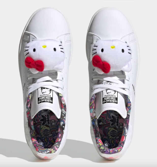 “Dos íconos se juntan: las zapatillas adidas Stan Smith y Hello Kitty. El amado personaje se hace cargo de la silueta atemporal con colores suaves y una bolsa de Hello Kitty justo en la parte superior. Un logotipo de Hello Kitty reemplaza al habitual Stan Smith, pero el parche del talón y las 3 Franjas perforadas se mantienen auténticos al original. Aunque no puedes verlo mientras están puestos, sabrás que escondido dentro hay un divertido y caótico estampado de Hello Kitty en la plantilla”, anunció Adidas en su sitio web.