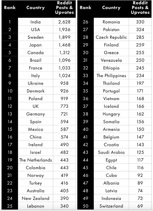 “Teníamos curiosidad por saber qué piensa el mundo de otras nacionalidades en las apuestas de sensualidad. Por lo tanto, hemos analizado los datos para descubrir dónde tienen los ciudadanos más atractivos, quizás brindándole una lista de destinos para su próximo viaje si está buscando romance. Analizamos los datos de Reddit, extrayendo la cantidad de publicaciones y votos a favor que hablaban de naciones atractivas, para revelar qué nacionalidades atraen más al mundo”, explicó la marca en su sitio web.