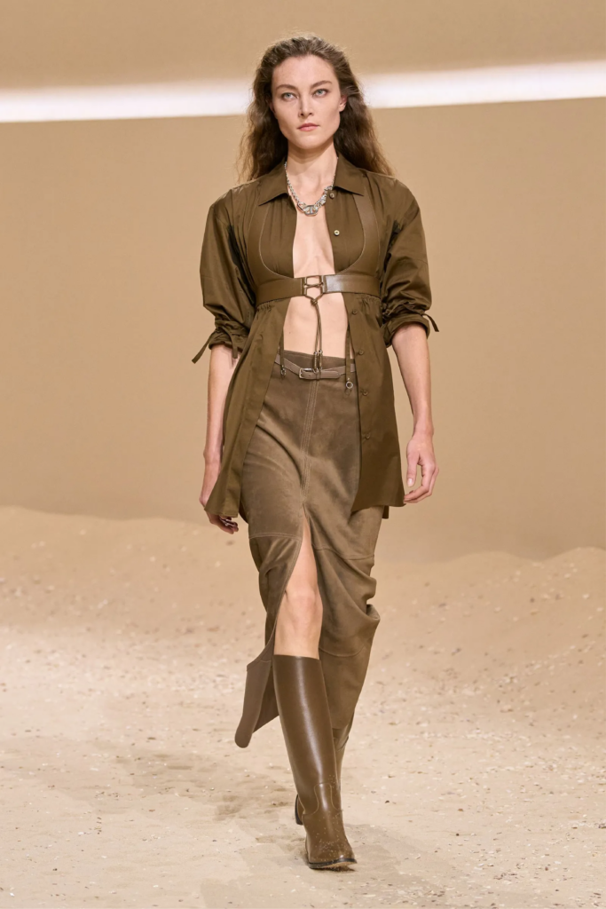 Las colecciones de primavera han consolidado esta pieza como imprescindible. Firmas como Alaïa han explorado volúmenes escultóricos con aberturas pronunciadas. Por su parte, Bottega Veneta reafirma el poder de la construcción minimalista, donde la abertura funciona como un elemento estructural más que decorativo.