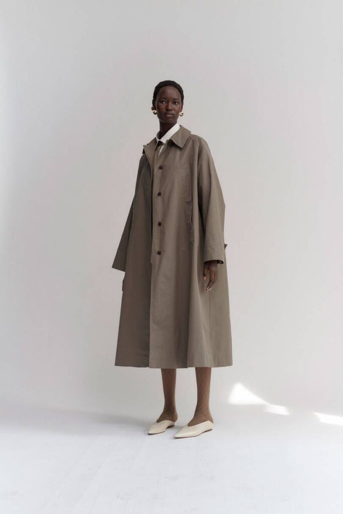 Pero si hay algo que consolida el éxito de la gabardina con cuello de camisa es su versatilidad. Puede combinarse con jeans y camisetas básicas para un look casual refinado, o con pantalones de vestir y sandalias de tacón para una propuesta más elegante. Incluso funciona sobre vestidos ligeros, creando un contraste interesante entre estructura y fluidez.