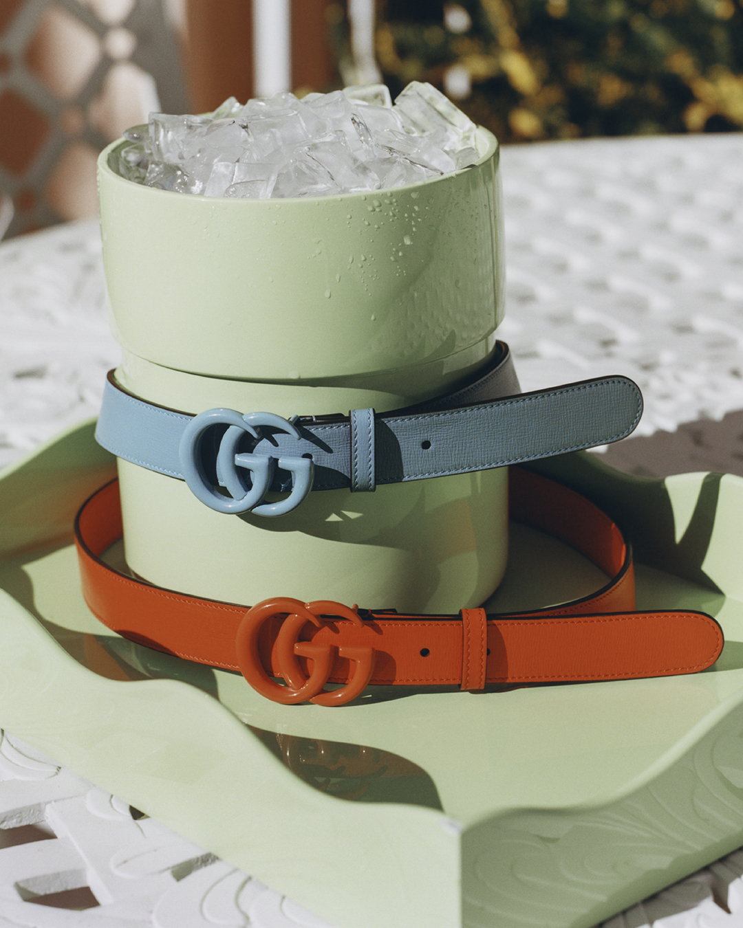 ¿Y qué sería de un look sin accesorios? Una amplia gama de mochilas, bolsos, riñonera, maletas y accesorios pequeños de cuero como cinturones, estuches y carteras. Todos los artículos se enriquecen aún más con una banda distintiva azul-roja y la frase “WHAT’S INSIDE” en color rosa para darle un toque divertido e inesperado. De acuerdo con el compromiso continuo de Gucci con la sostenibilidad, el diseño GG Supreme con el estampado de piña presenta revestimientos sin disolventes, algodón de origen orgánico y los detalles y estampados fueron creados mediante impresión digital con colores a base de agua.