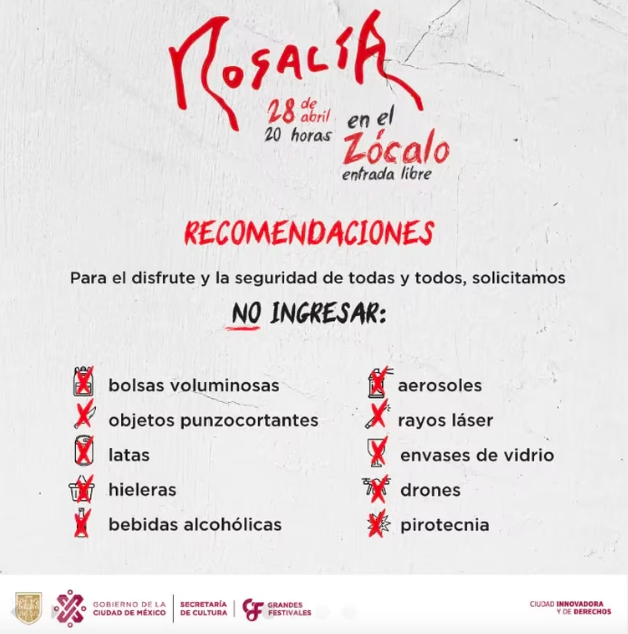 Por su parte, el Gobierno de la Ciudad de México compartió algunas recomendaciones a la ciudadanía para mantener el orden y la seguridad durante el concierto de Rosalía: