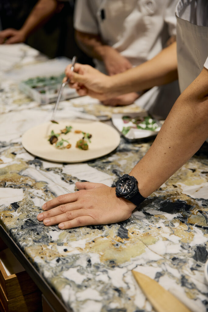 Jorge Vallejo, chef de dos estrellas Michelin y fundador de Quintonil junto a Alejandra Flores, ofreció una interpretación donde tradición y modernidad conviven con naturalidad. Su cocina dialoga con el territorio mexicano sin renunciar a la innovación, un enfoque que conecta profundamente con el espíritu Art of Fusion de Hublot.