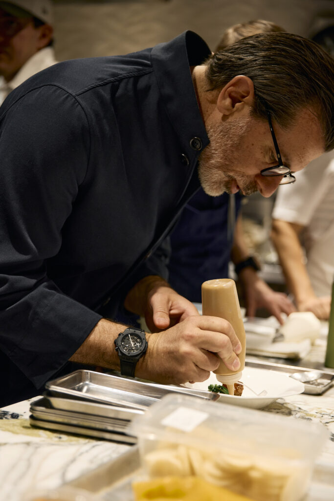 Andreas Caminada, reconocido con tres estrellas Michelin y parte de la familia Hublot desde 2017, aportó una visión donde técnica y sensibilidad se entrelazan. Su trayectoria, marcada por el rigor y la innovación, refleja los valores que definen a Hublot. En esta celebración, su propuesta se integró en un menú degustación de doce tiempos concebido como una narrativa sensorial.