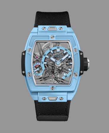Desde su debut en 2014, la colección Spirit of Big Bang se ha distinguido por su caja en forma de tonel y un diseño construido en múltiples capas. El nuevo modelo de 42 mm sigue la misma arquitectura y conserva elementos esenciales del ADN de Hublot: el movimiento esqueletizado, los seis tornillos en el bisel, la corona con agarre de caucho, las asas protectoras y el sistema de correas intercambiables. El uso de cerámica coloreada otorga al perfil del reloj una presencia más marcada, reforzada por bisel y esfera a juego. Cada referencia se lanza en una serie limitada a 20 unidades, subrayando su condición de pieza exclusiva.