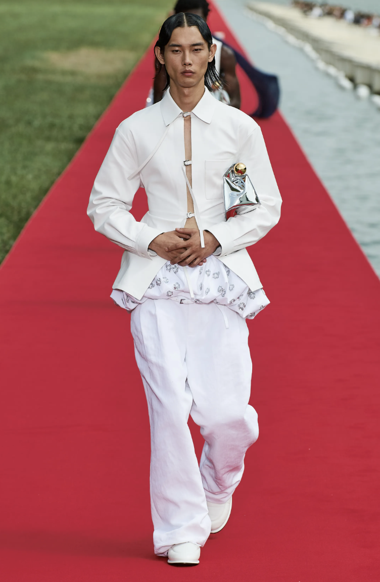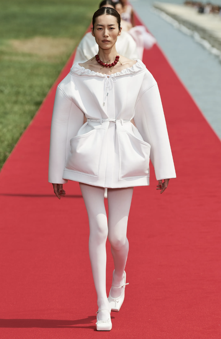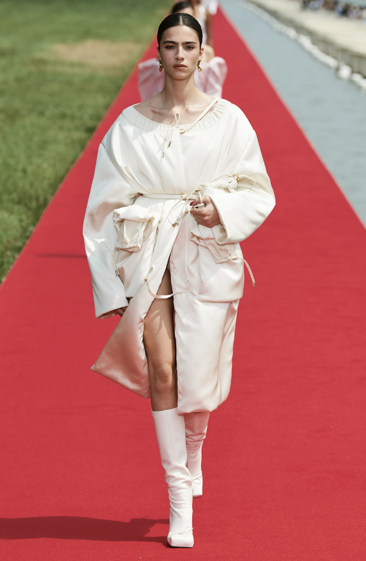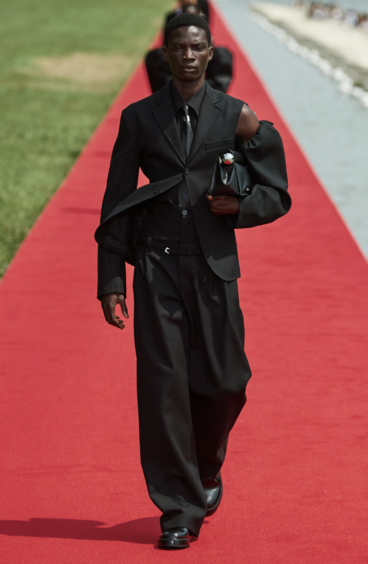 Combinando lujo y accesibilidad, Jacquemus pretendía llevar la opulencia de Versalles a la gente, revolucionando la experiencia de los desfiles de moda. Inspirándose en María Antonieta, la Princesa Diana y el ballet, la colección presentaba siluetas arrugadas, sastrería ingeniosa y accesorios refinados.