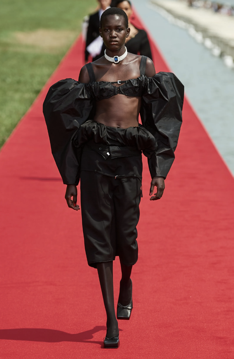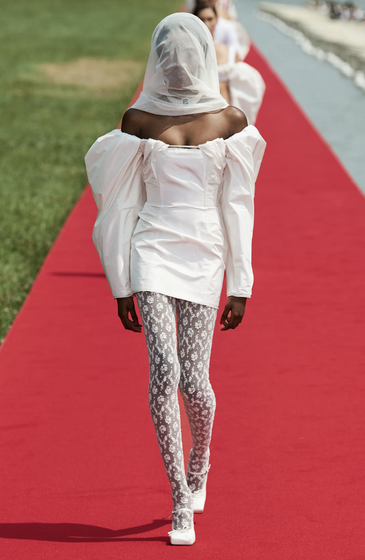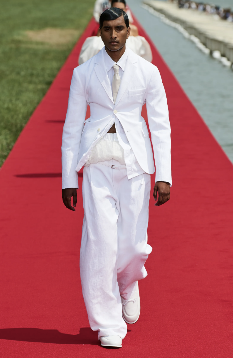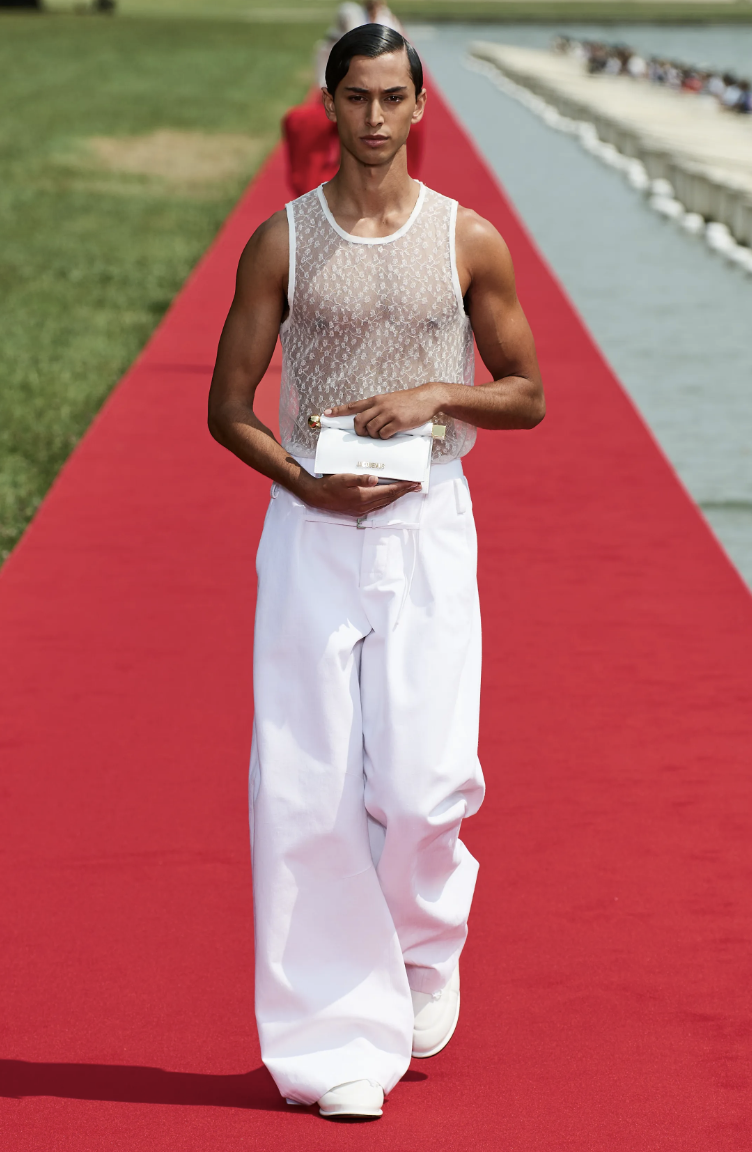 Combinando lujo y accesibilidad, Jacquemus pretendía llevar la opulencia de Versalles a la gente, revolucionando la experiencia de los desfiles de moda. Inspirándose en María Antonieta, la Princesa Diana y el ballet, la colección presentaba siluetas arrugadas, sastrería ingeniosa y accesorios refinados.