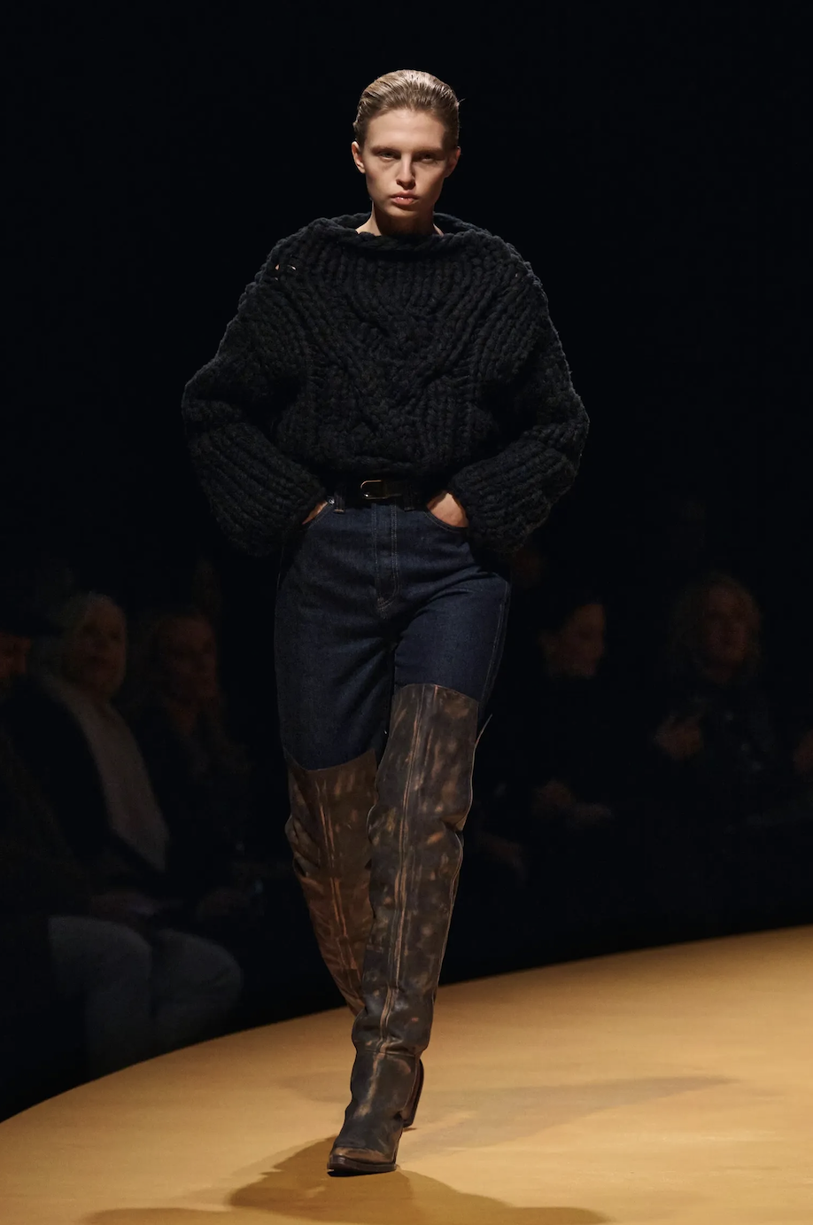 Hoy, ese mismo equilibrio conquista el otoño. Celine, Totême o The Row reinterpretan el clásico con un aire más pulido, apostando por mezclilla orgánica, cortes impecables y una elegancia tan natural que parece accidental. Pero nada en este look lo es.