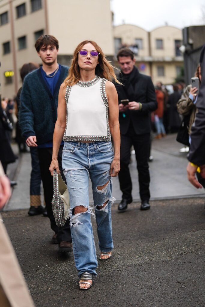 La clave de este retorno está en la edición. Ya no se trata de roturas múltiples ni de desgastes agresivos que dominen el look. Hoy, una sola abertura bien colocada basta para transformar una prenda clásica en un gesto contemporáneo. Rodillas sutilmente abiertas, bajos deshilachados con precisión o hilos sueltos casi imperceptibles introducen carácter sin romper la armonía visual.