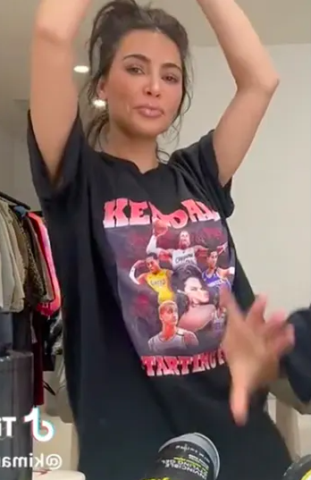 Kim dejó ver la playera durante un video que subió con North West el domingo desde su cuenta conjunta de TikTok. Mientras bailaban y Kim peinaba el cabello de North, la playera se robó los reflectores y tomó el protagonismo.