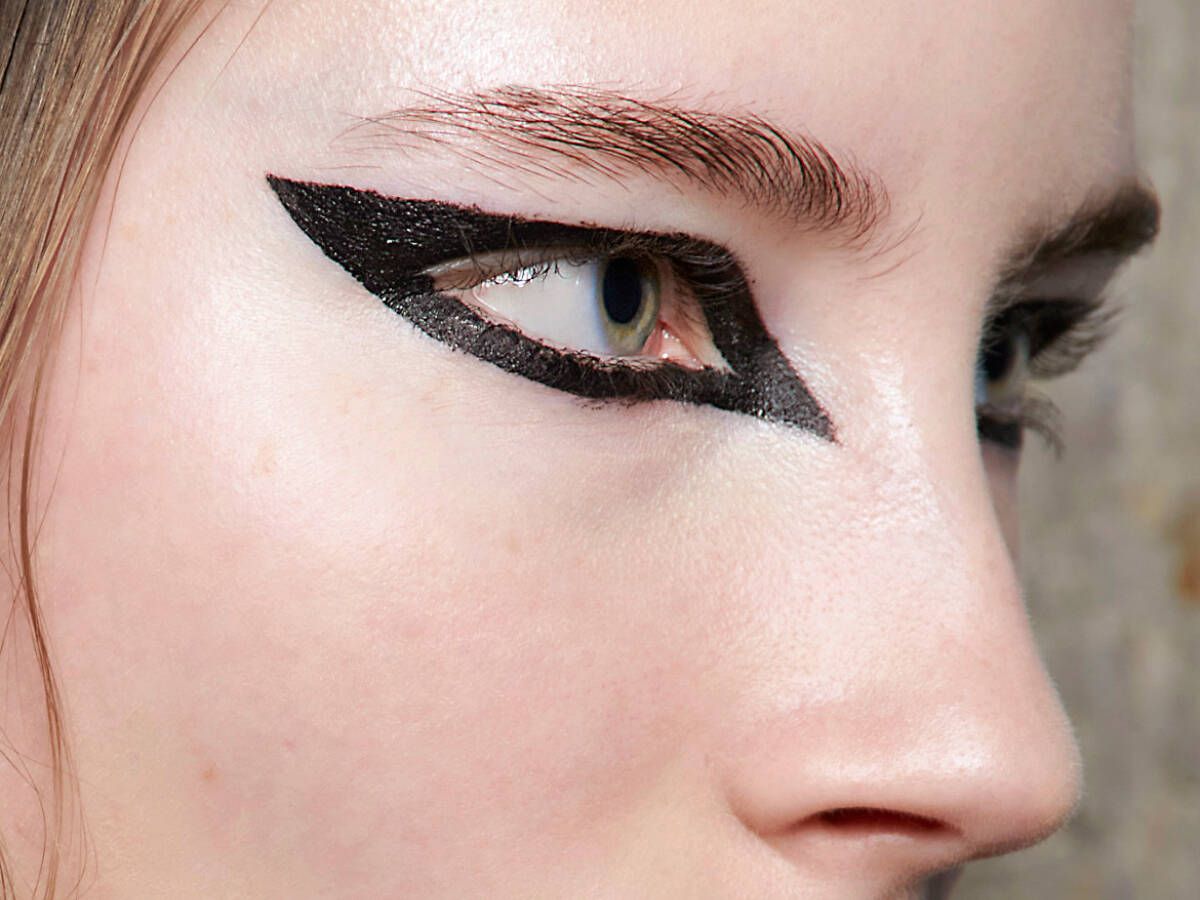 Este look combina un delineado negro más estructurado con una piel lo más natural posible. Tras preparar la piel con hidratante y una base ligera, emplea un delineador líquido de punta fina para trazar líneas definidas cerca de las pestañas superiores, extendiendo una pequeña “ala” hacia fuera. Para una variación más elaborada, incorpora pequeñas líneas verticales desde el centro del párpado hacia arriba, manteniendo simetría. Mantén el resto del rostro neutro y labios suaves o transparentes para no competir con el grafismo del delineado.
