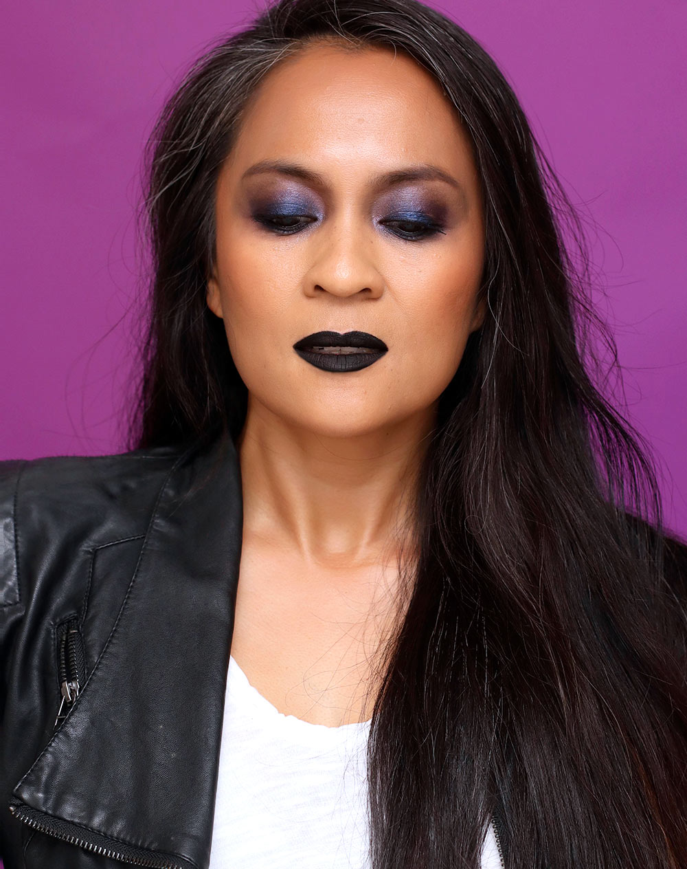 El labial negro sigue siendo un emblema de esta estética, pero aquí se propone con una piel bien trabajada y cejas nítidas. Exfolia los labios y aplica hidratante. Delínea cuidadosamente con lápiz negro y rellena con labial de mismo tono. Mantén el resto del rostro con base ligera y corrector donde sea necesario. Peina y define cejas con gel y lápiz de tono natural para equilibrar la fuerza del labial.